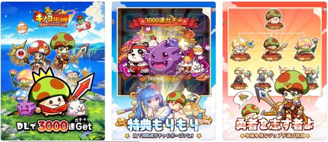 - 勇者キノコの育成要素が多数!戦略や敵に合わせて職業を選んで、スキルを磨こう!有利にプレイを進めるキノコの超進化にも注目!